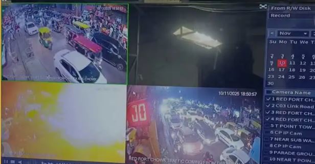 दिल्ली में लाल किला के पास चलती कार में हुए भीषण धमाके का सीसीटीवी फुटेज अब सामने आया है, जिसमें घटना की पूरी भयावहता कैद हुई है। ...