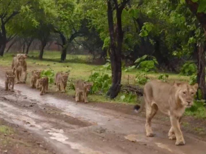 गिर-सोमनाथ में आठ शेरों के झुंड से मची दहशत, रातभर गांव में घूमते...
