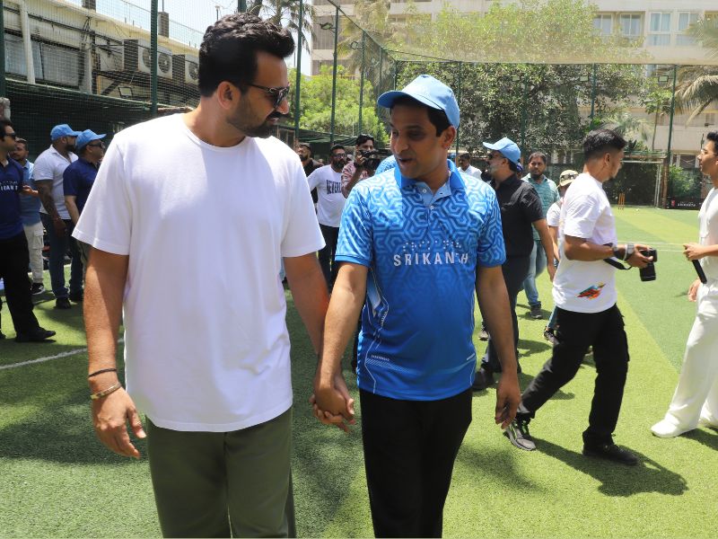 Zaheer Khan And Rajkummar Rao With Team Srikanth Snapped Playing Cricket With Visually Impaired Players At Astro Turf, NSCI Club, Worli